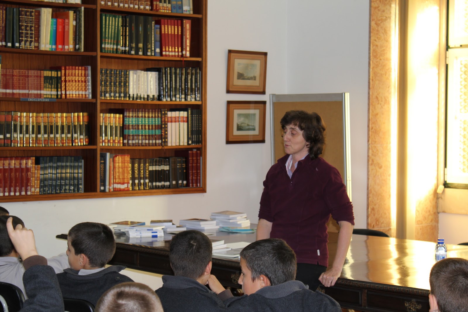Uma sala de leitura a transbordar de alunos interessados, do 5.º e 6.º ano... dezenas de perguntas... muito entusiasmo... foi o que encontrei por detrás daqueles portões que tão bem conhecia por fora.
